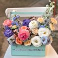 Белые и розовые розы в коробке