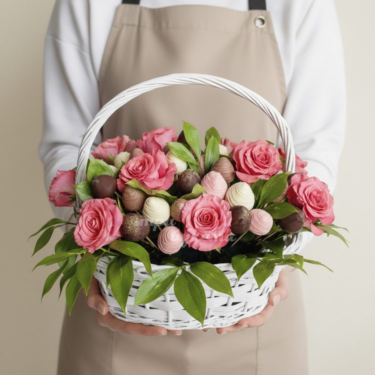 Букет из клубники в корзине
