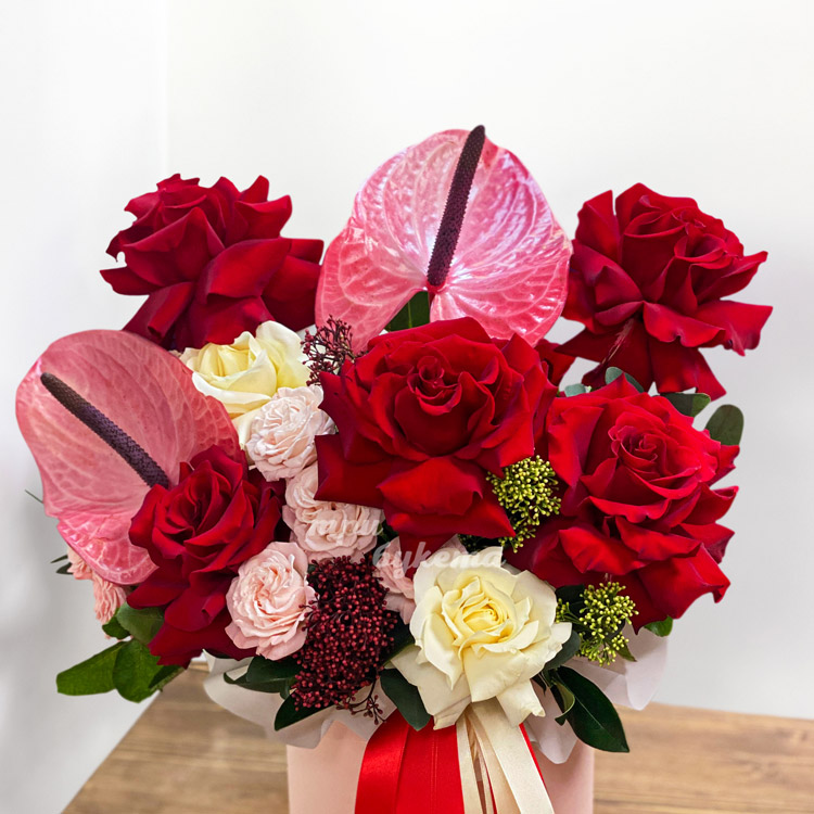 Французские розы и антуриумы в коробке