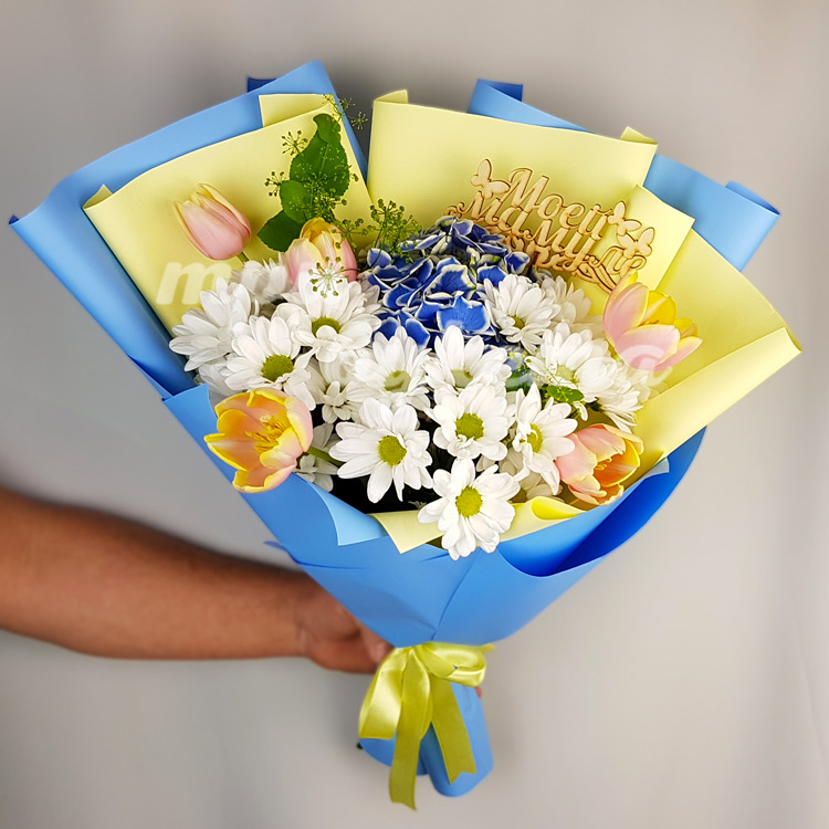 Хризантемы и тюльпаны для мамы
