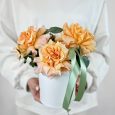 Коробочка с розовыми розами и эвкалиптом