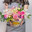Корзина пионовидных роз и статицы