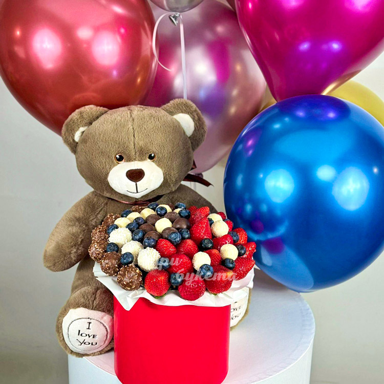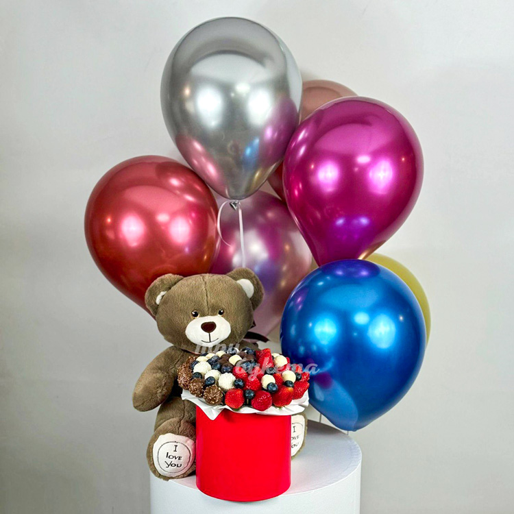 Набор из мягкой игрушки, шариков и клубники