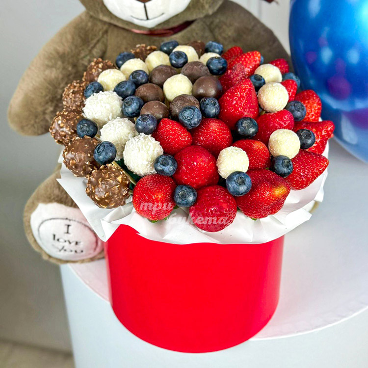 - Клубника с конфетами в шляпной коробке