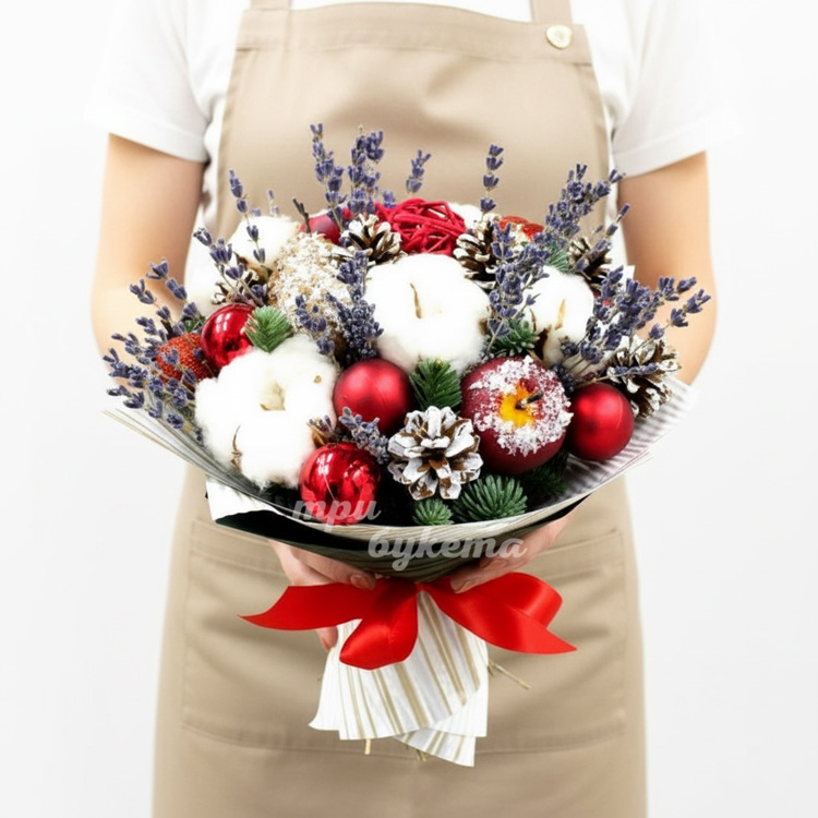 Новогодний букет из хлопка в крафте