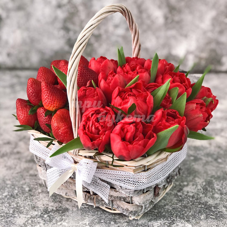 Пионовидные тюльпаны с клубникой