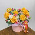 Шляпная коробка роз Шиммер с орхидеями